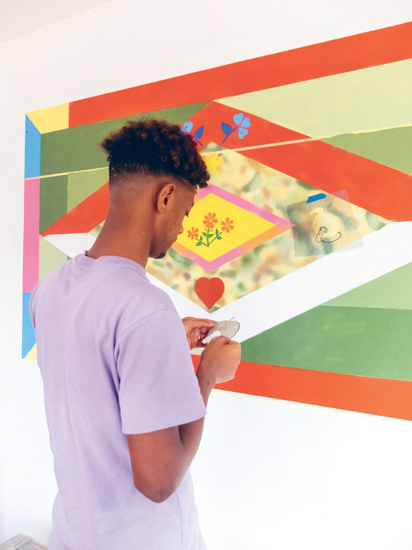 Anschließend wurden Stencils geschnitten und die Motive mit Sprühlack an die Wand gebracht.